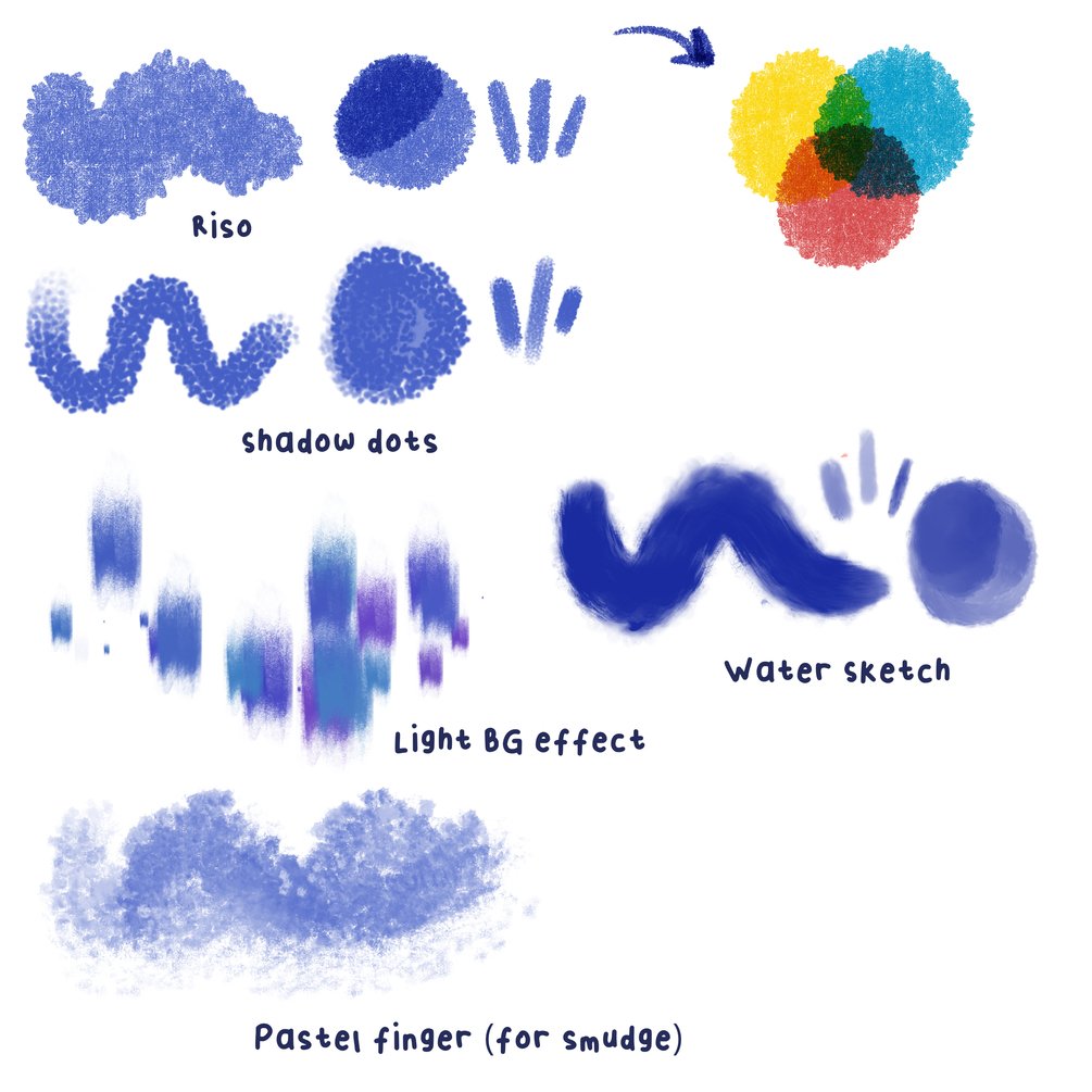 - 15 brushes created by me, the vast majority of them with textures inspired by traditional pencils