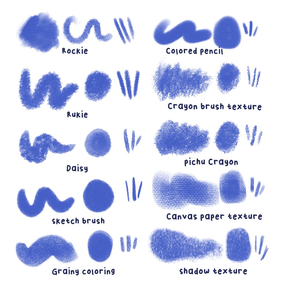 - 15 brushes created by me, the vast majority of them with textures inspired by traditional pencils